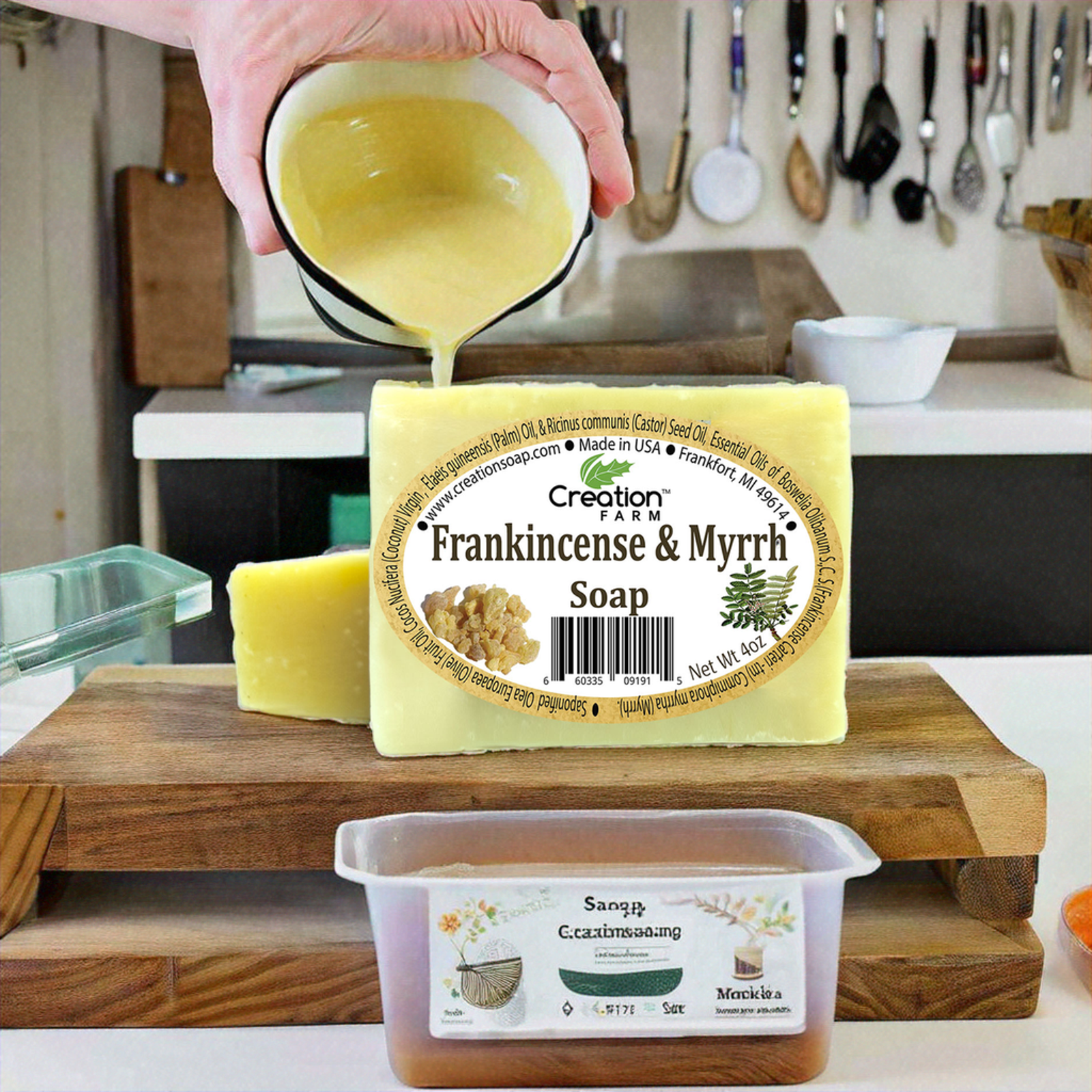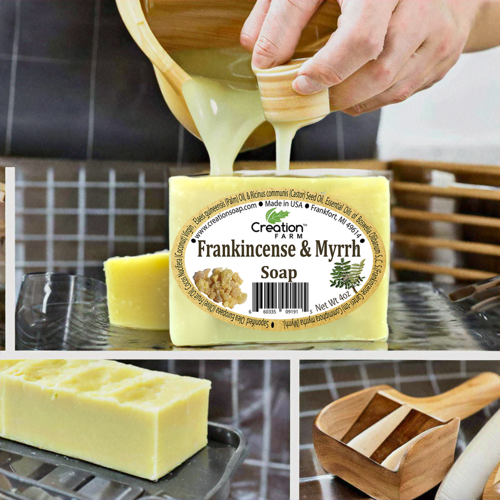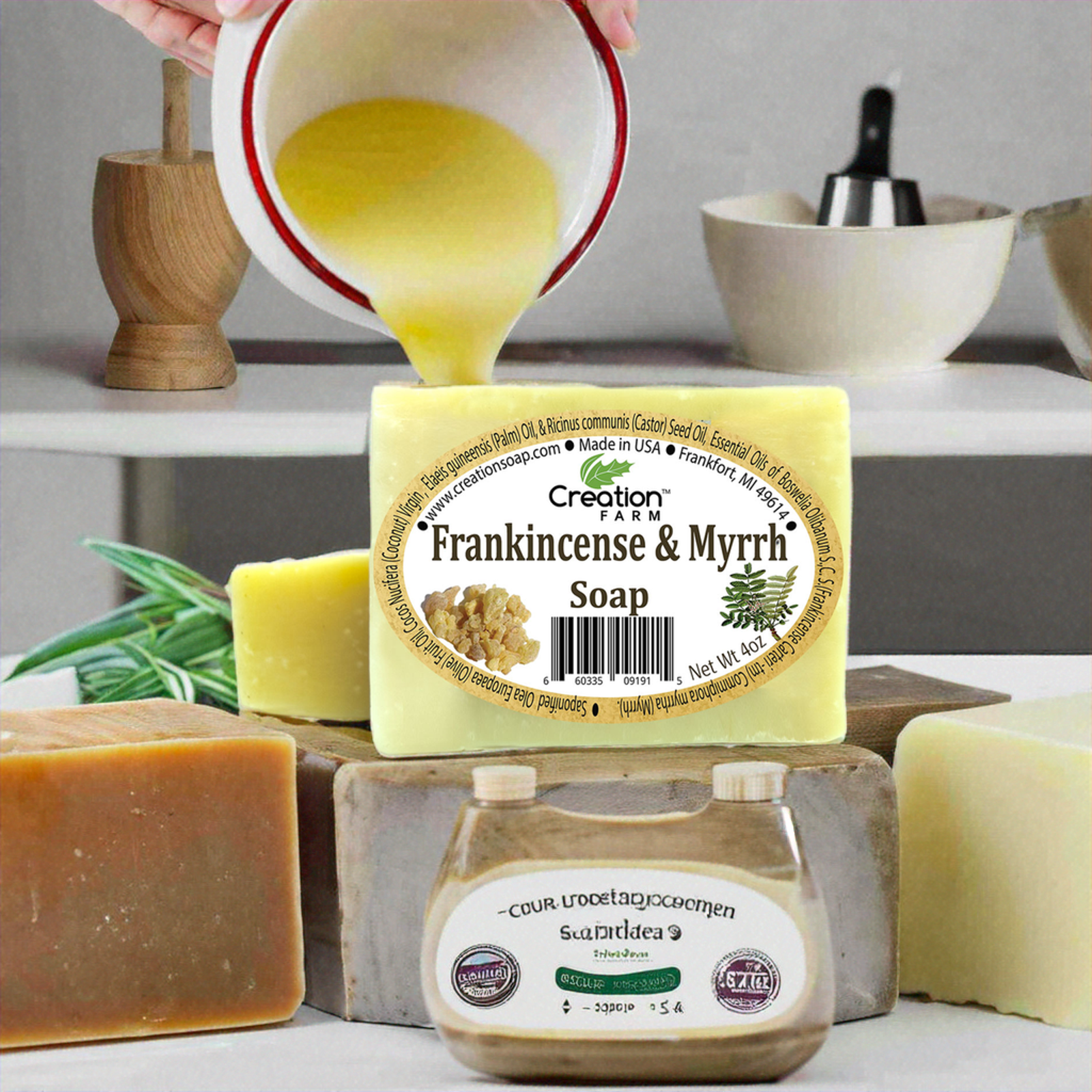 Experience the timeless allure of Creation Farm Frankincense & Myrrh Soap, a handmade artisan bar crafted for daily indulgence and thoughtful gifting. Scented with authentic frankincense essential oil and myrrh resin, it offers a warm, centering aroma that resonates with tradition.