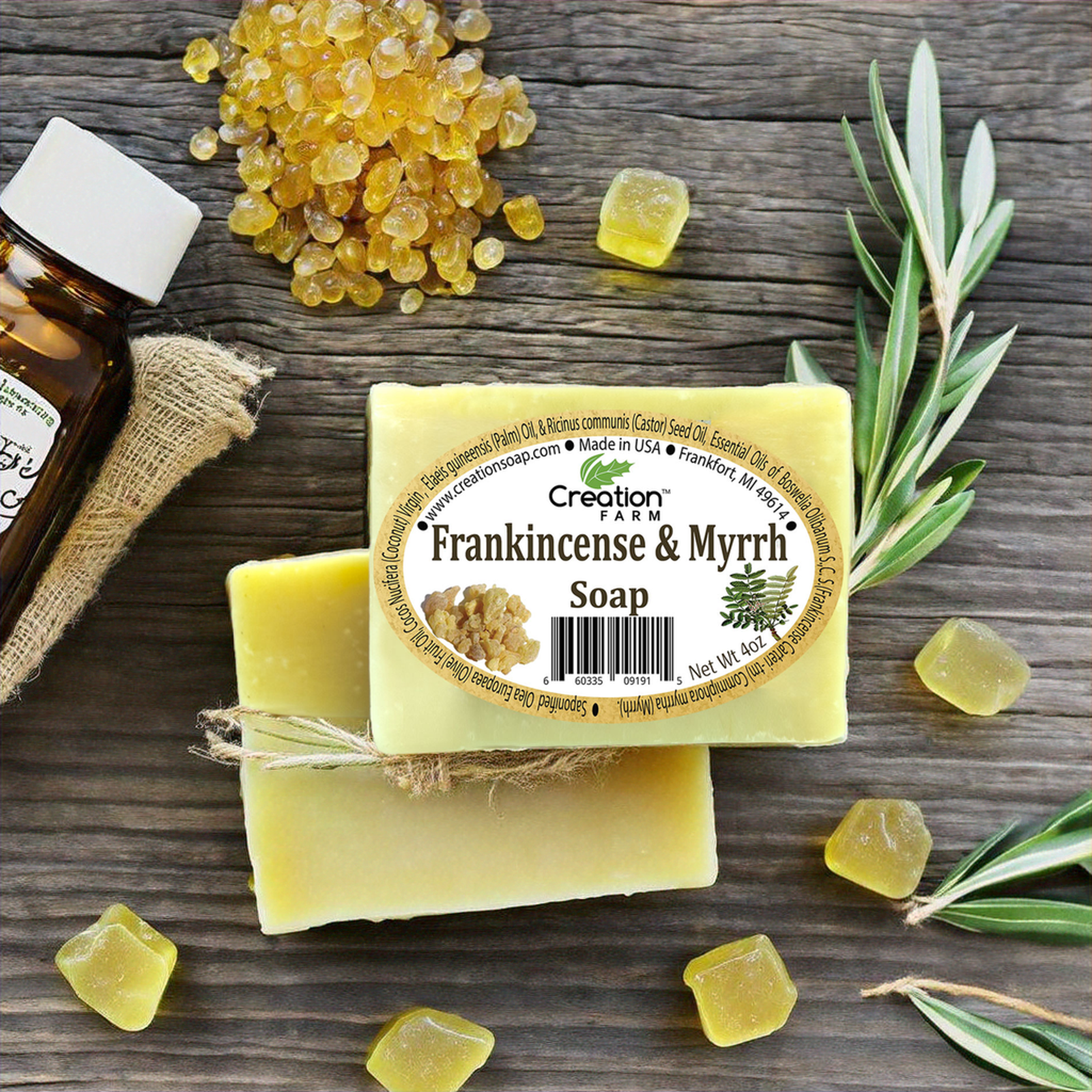 Frankincense And Myrrh Soap Bars Artisan Soap With Olive Coconut Castor Palm Oils Two 4 Oz Bars Creation Farm