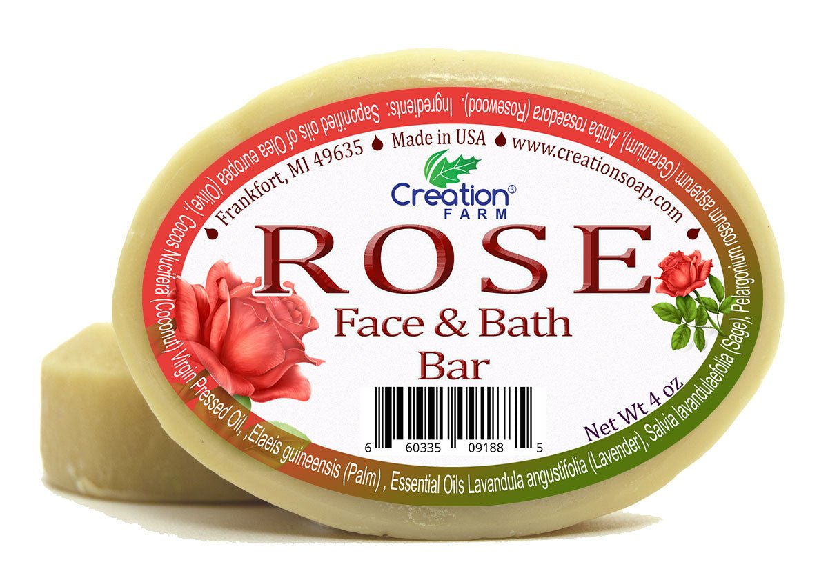 Rose Face and Bath Soap Twin Pack Two 4 Oz Bars by Creation Farm for Normal to Oily Skin Rose Geranium and Rosewood Oils
