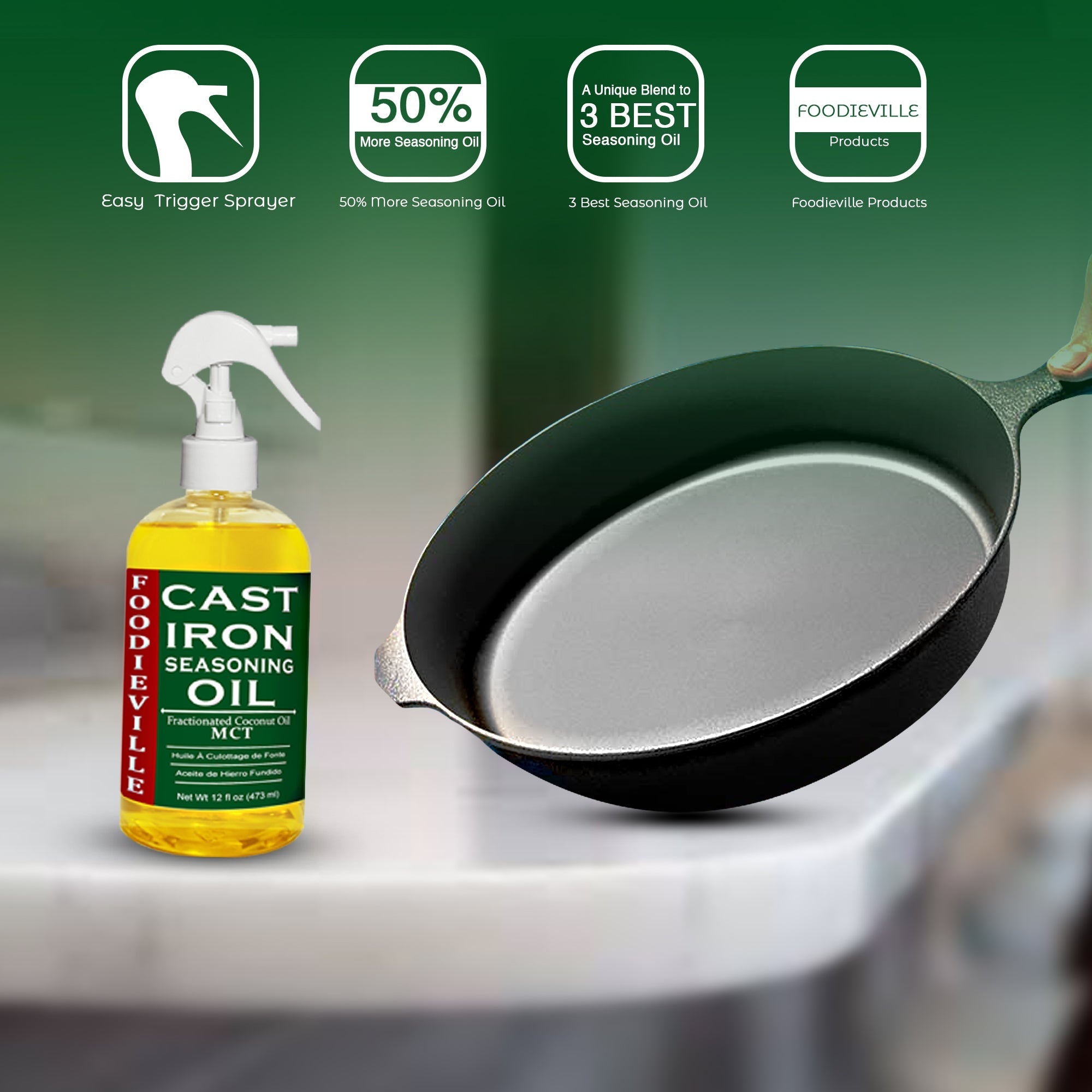 FOODIEVILLE Cast Iron Oil is a seasoning oil designed specifically for cast iron surfaces. It restores and maintains a natural nonstick finish, helping your iron cookware stay easier to clean and more enjoyable to cook with.